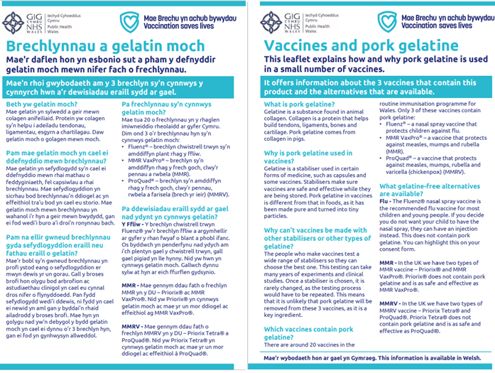 Taflen gwybodaeth Brechlynnau a gelatin moch - Vaccines and pork gelatine fact sheet.png 432KB 697x525 56ppcm sRGB * Asset Code: IMM224_digital Asset Category: #DigitalVersion Digital Assets Brechlynnau a gelatin moch.pdf 158KB Vaccines and pork gelatine (1).pdf 157KB Top